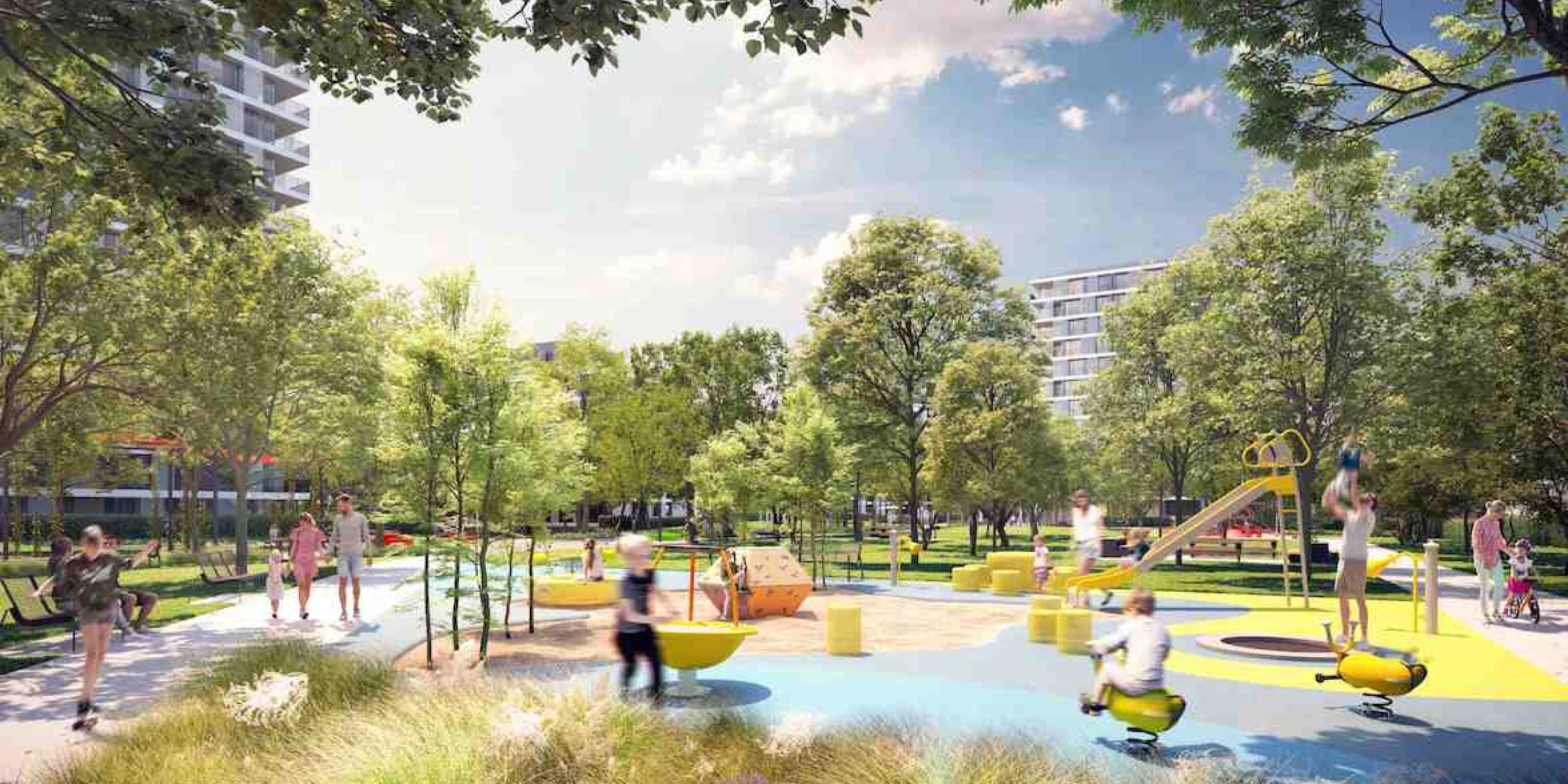 "The intention was to create a space where comfortable and safe living under the treetops meets playfulness and a willingness to co-create a community proud to live in this environment. The park will be a green oasis in the city, a place of tranquility but also a lovely artistic exaggeration. We want visitors to feel relaxed in the shared park and want to contemplate or just laugh," explains Ferdinand Leffler, chief architect of Atelier Flera.